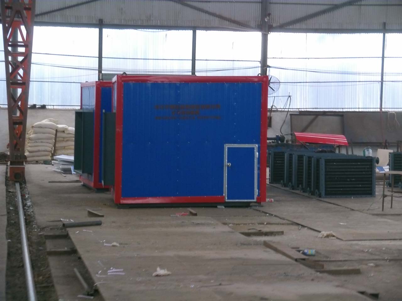 工作原理:以爐膛內煤炭、秸稈或其他形式的余熱為熱源,將熱風引入散熱管內,將外界進來的冷空氣通過空氣箱內換熱管組成的截面,使空氣加熱以一定的流速進入烘干設備。